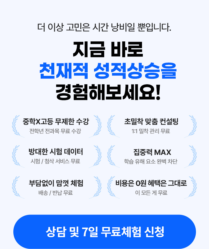 무료체험만 해도 내신강좌 + 입시전략 + 실전자료 + 선물 모두 드립니다!